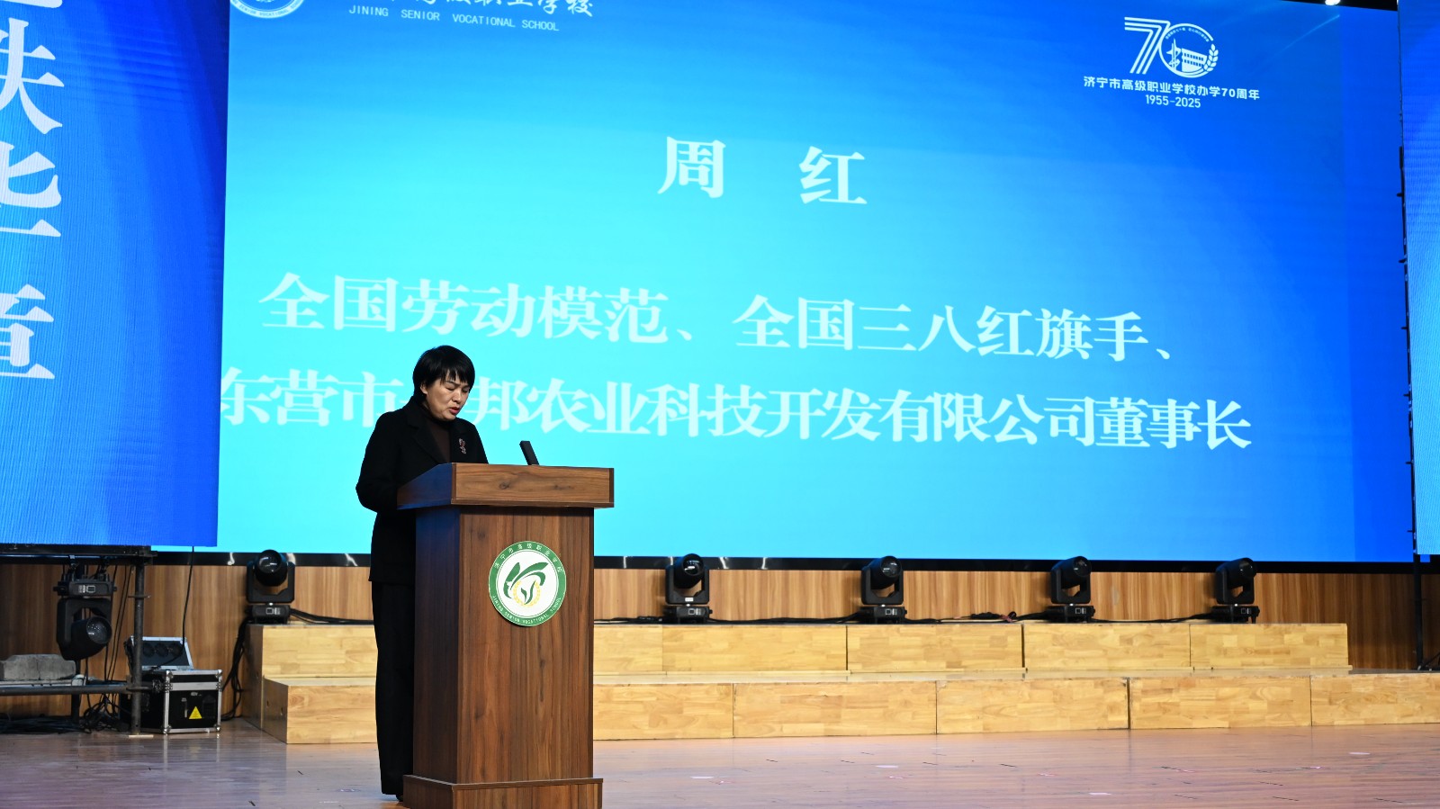 济宁市教育副局长褚福梅向学校办学70 周年致以热烈祝贺。她指出,济宁高职校作为全市职业教育事业的中坚力量,始终锚定产业发展需求,与地方经济社会发展同频共振,办学成果丰硕、成绩斐然,值得充分肯定。同时,她就学校未来发展提出明确要求,强调学校要持续做优专业布局、深化校企协同育人、凝聚多方融合合力、放大示范引领效应,以更高标准、更实举措推动职业教育高质量发展。她表示,市教育局将一如既往地关心支持济宁高职校的发展,为学校深化改革、提质增效、产教融合提供坚实保障。