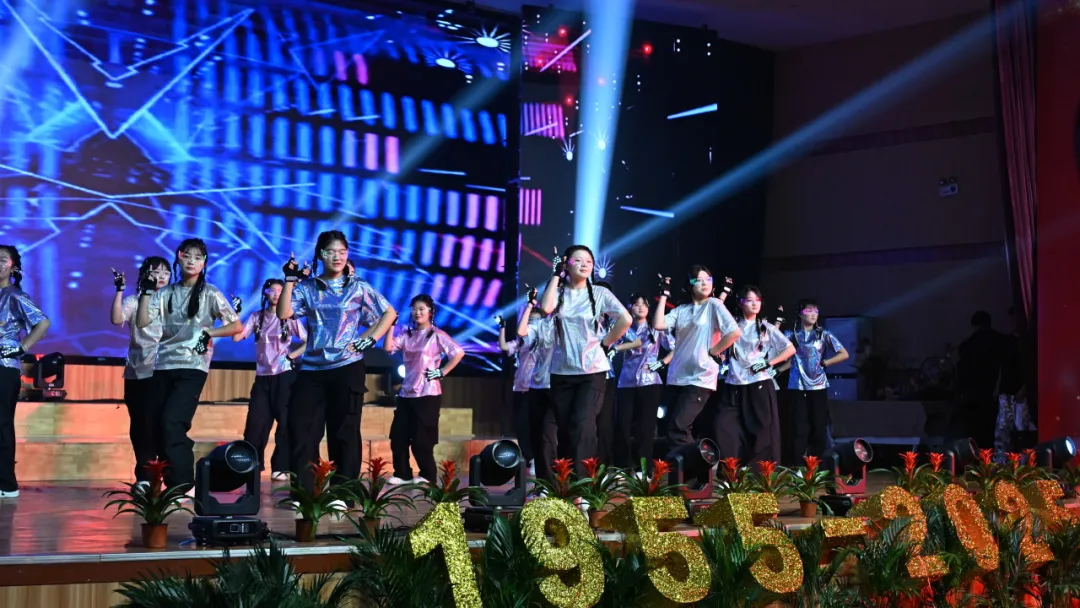 伴随着激昂的旋律与绚丽的灯光,开场歌舞《盛世欢歌》率先登场。30名学生身着靓丽服装,手持彩带、花环,以整齐划一的动作、昂扬喜庆的神情,在舞台上变换出多样队形,瞬间点燃全场气氛,为这场跨越七十年的庆典拉开序幕。