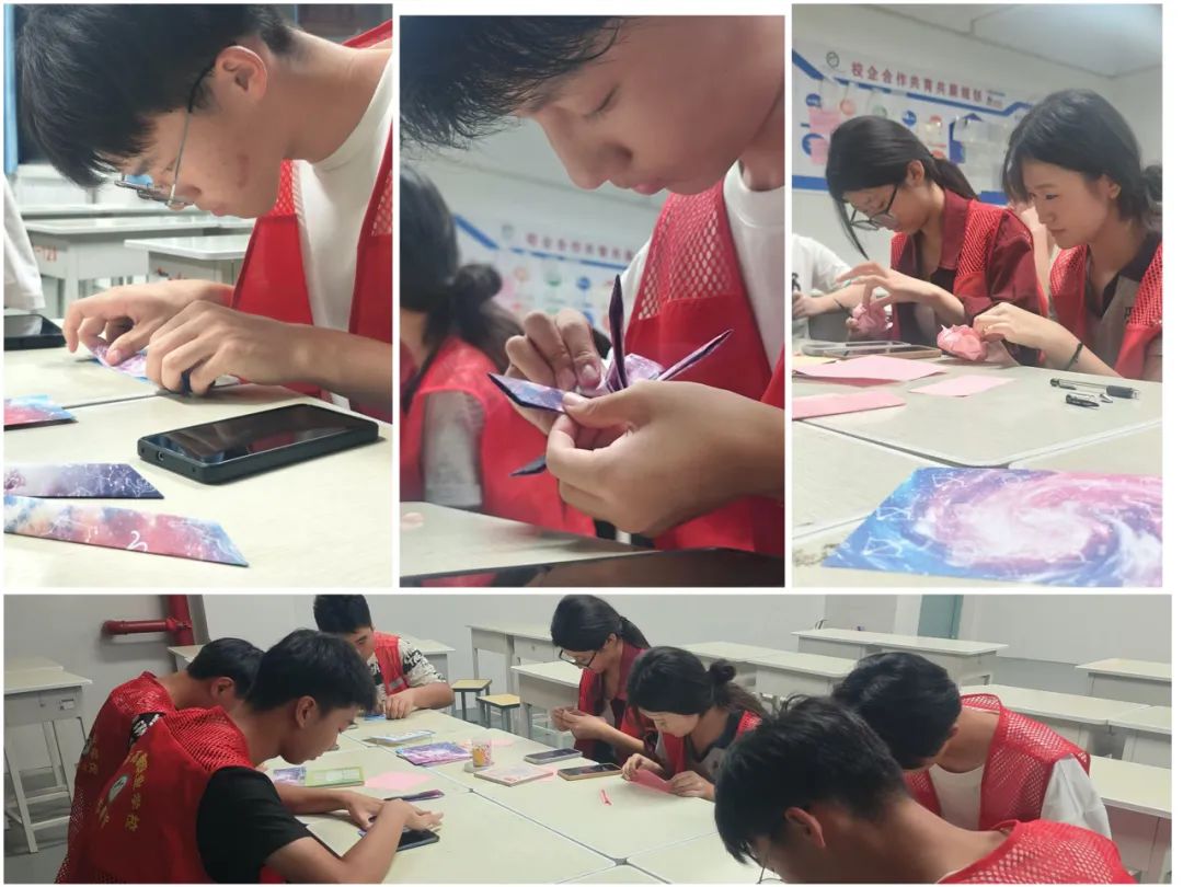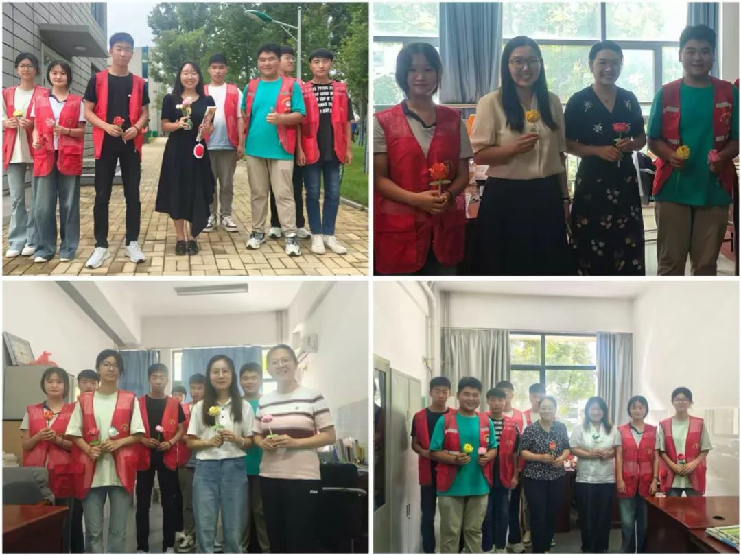 活动最初,志愿者利用彩纸、剪刀、胶水等材料,开始了一场创意无限的手工之旅,同学们或低头专注地折叠花瓣,或小心翼翼地粘贴花茎,每个人分工明确。每一片花瓣、每一片叶子都凝聚着志愿者们的心血与对老师的深情厚意,五彩斑斓的纸质花束逐渐成形。每一束都独一无二,充满了志愿者们对老师的独特理解和感激之情。甚至有的花束附上了志愿者们亲手写下的祝福语,字里行间流露出对老师的深深敬意和美好祝愿。